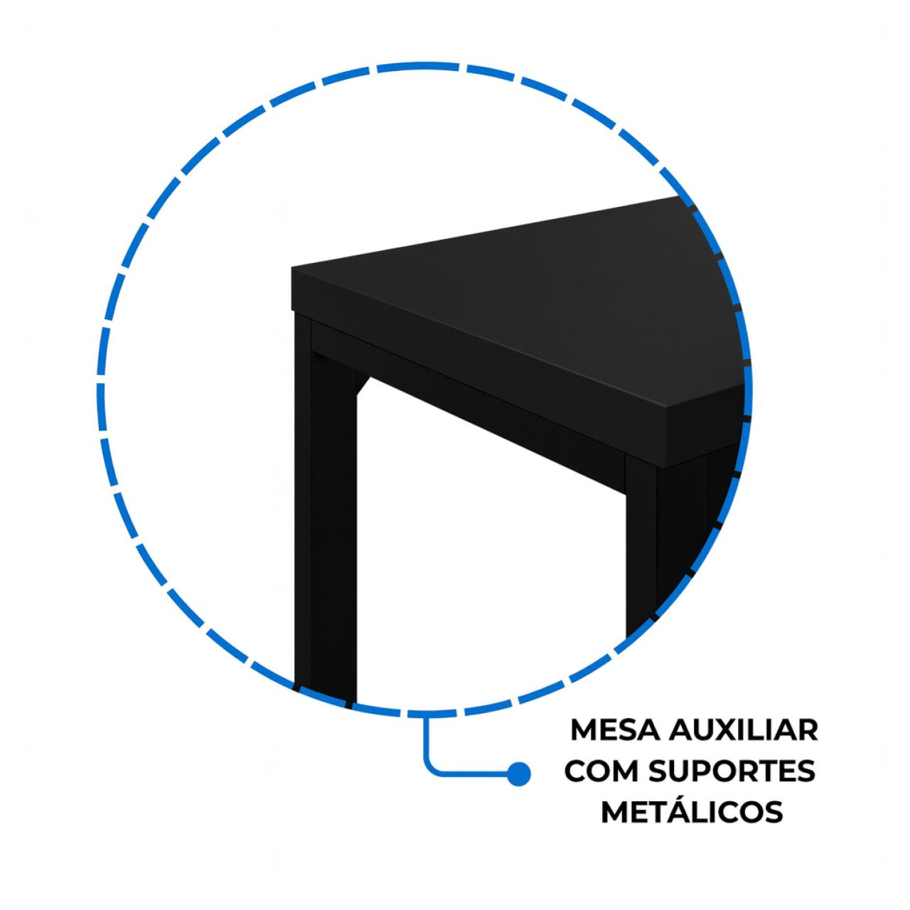 • Profundidade: 60 cm (mesa principal) / 45 cm (auxiliar)